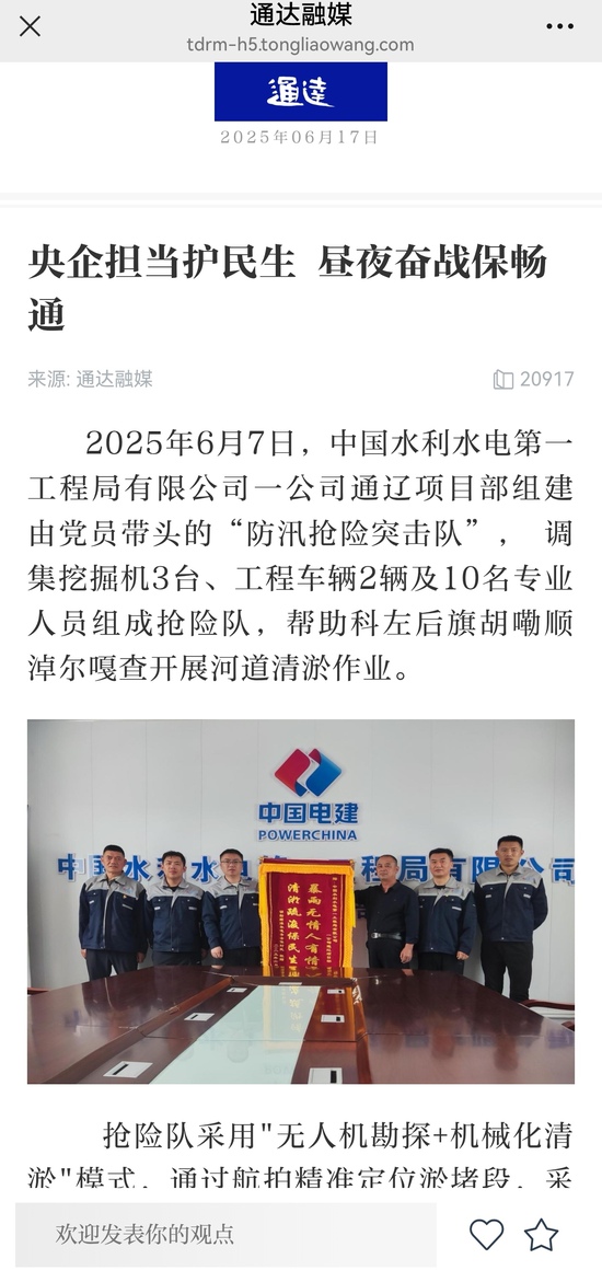 【通達融媒】:央企擔當護民生 晝夜奮戰保暢通——通遼項目部積極參與地方抗洪搶險,進行河道清淤